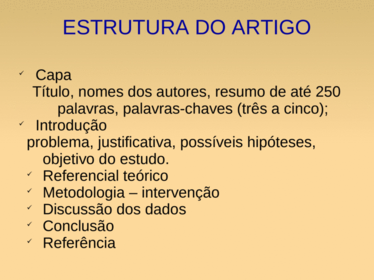 | A Estrutura Básica de um Artigo deve conter no mínimo 5 Capitulos | |