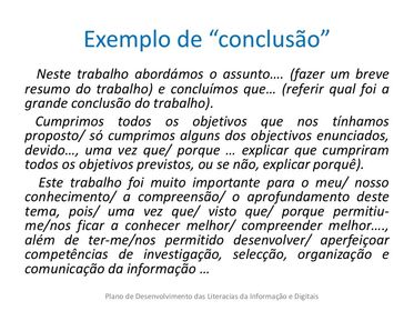 | Quais as principais características das Considerações Finais (Conclusões) do Trabalho ? | |