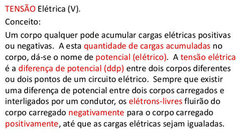 | Unidade no SI da Tensão Elétrica | A unidade é o Volt, representado pela letra maiúscula V |