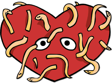 Give an example of parasitism? | A heartworm parasite is living in the dog's heart. The worm starts to breed rapidly clogging up the dog's heart and when left without treatment the dog will gradually die. |