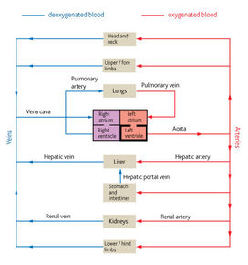 | Transport system in mammals | Blood is confined to vessels. A muscular pump called the heart circulates blood around the body. Mammals have a double circulatory system to maintain pressure. Substances are delivered to the rest of the body quickly which is necessary due to the high rate of metabolism in mammals. The vessels of mammals are divided into arteries, veins and capillaries. Although the transport system moves substances long distances the final part of the journey is by diffusion. |