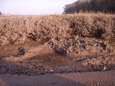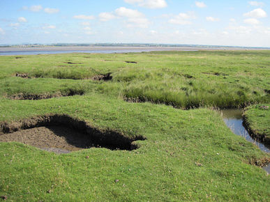 CLOSE VEGETATION OVER MUD- colonisation of marsh grass and sea lavender (form dense mat up to 15cm high) |