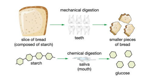 Chemical digestion | Chemical digestion refers the to the breakdown of food in the mouth, stomach and intestines through the use of acids and enzymes. |