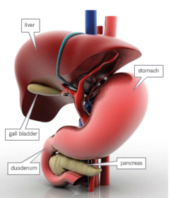 What is the liver? | The liver is a large, meaty organ that sits on the right side of the belly. The liver has multiple functions, but its main function within the digestive system is to process the nutrients absorbed from the small intestine. |