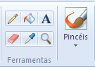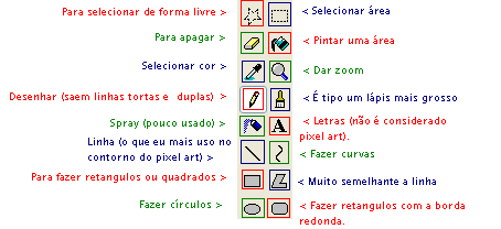 ALGUMAS DICAS Aumentar a Borracha: CTRL + (+) Cor 1: Clique sobre ela e na COR. Cor 2: Clique sobre ela e na COR. Para mudar de ferramenta basta clicar. | PALETA DE CORES |