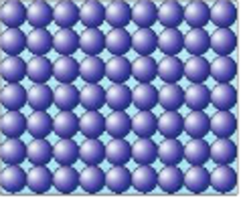 solids strong forces of attraction hold particles in fixed regular arrangement |