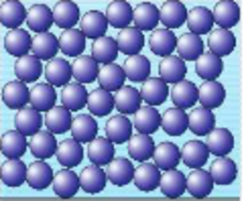 Liquids weaker forces of attraction close together but move past each other, irregular arrangements. more energy than solids so move in random directions at low speeds |