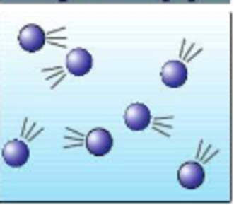 gases almost no forces of attraction, have more energy so are free to move in random directions and high speeds |