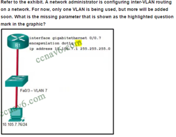 | -It identifies the type of encapsulation that is used -It identifies the subinterface -It identifies the number of hosts that are allowed on the interface -It identifies the native VLAN number | It identifies the VLAN number |