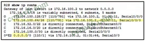 | Refer to the exhibit. What is the administrative distance value that indicates the route for R2 to reach the 10.10.0.0/16 network? 1 0 90 20512256 | 1 |