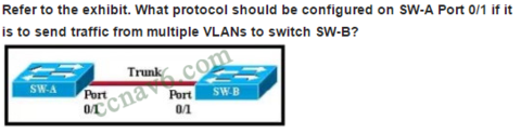 | Which three pairs of trunking modes will establish a functional trunk link between two Cisco switches? (Choose three.) -dynamic desirable – dynamic desirable -dynamic auto – dynamic auto -dynamic desirable – dynamic auto -dynamic desirable – trunk -access – trunk -access – dynamic auto | -dynamic desirable – dynamic desirable -dynamic desirable – dynamic auto -dynamic desirable – trunk |