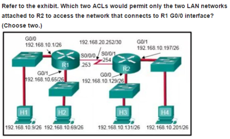 | -access-list 4 permit 192.168.10.0 0.0.0.255 -access-list 1 permit 192.168.10.128 0.0.0.127 -access-list 2 permit host 192.168.10.131 access-list 2 permit host 192.168.10.201 -access-list 5 permit 192.168.10.128 0.0.0.63 | access-list 2 permit host 192.168.10.131 access-list 2 permit host 192.168.10.201 |