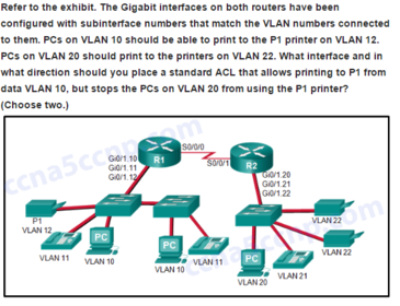 | -R1 Gi0/1.12 -R1 S0/0/0 -R2 S0/0/1 -R2 Gi0/1.20 -inbound -outbound | -R1 Gi0/1.12 -outbound |