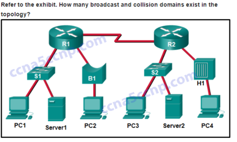 | -10 broadcast domains and 5 collision domains -5 broadcast domains and 10 collision domains -5 broadcast domains and 11 collision domains -16 broadcast domains and 11 collision domains | 5 broadcast domains and 10 collision domains |