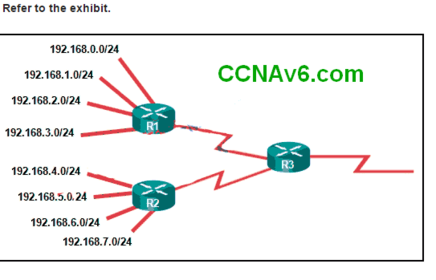 | What summary static address would be configured on R1 to advertise to R3? -192.168.0.0/24 -192.168.0.0/23 -192.168.0.0/22 -192.168.0.0/21 | 192.168.0.0/22 |