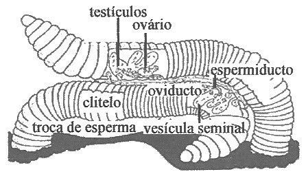 | Hermafroditas, as minhocas tem fecundação cruzada e recíproca; Possuem o clitelo, que protege os órgãos reprodutores e os ovos. |