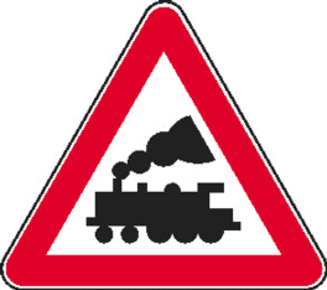 Približuješ se železniškemu prehodu. Manj kot je na znaku črtic, bližje si. |
