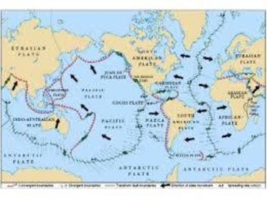 | PLATE TECTONICS: Introduction | INTRODUCTION: -massive, irregular, slabs of solid rock containing both continental and oceanic crust. -vary in size -move in different directions due to conventual upwelling of heat from the core -each plate moves a certain amount each year -this movement causes earthquakes to occur -believed that due to tectonic movement the continents that we have today were formed |