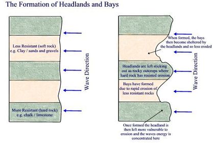 After cracks in the headland form, what is the next stage after continued erosion? | Sea Cave |