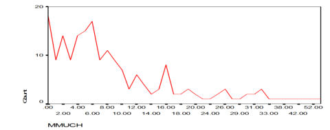 Positive skew. Normally occurs when asking about things which occur rarely, e.g., how often do you kill people. |