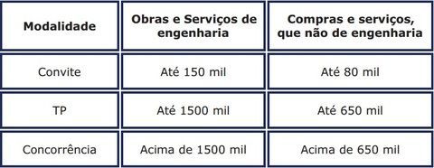 | Quais os valores máximos de cada modalidade da licitação? | |