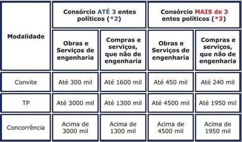 | Quais os valores da modalidades de licitação quando se trata de consorcio público formado por até 3 entes da federação? e quando formado por mais de 3 entes? | |