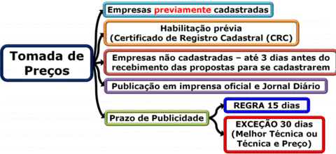 | quais as principais características da tomada de preço?(prazo, cadastrados ou não, habilitação) | |