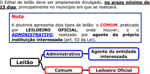 | Quais são os tipos de leilão? Qual o prazo do edital? | |