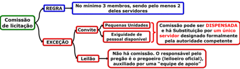 | Qual a composição da comissão de licitação para Convite, TP, concorrência e concurso? | Concurso: servidores públicos ou não. Demais: pelo menos 2 servidores públicos (+ servidores, + não servidores) Convite pode ser somente 1 servidor. |