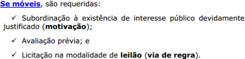 | Quais as características da alienação de bens móveis e imóveis? | |