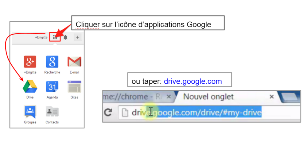 La connexion à CHROME nous donne accès à DRIVE et toutes les apps de GSuite Education.