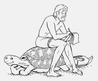 PARADOXO DE ZENÃO O MOVIMENTO É UMA ILUSÃO! O espaço é uma grandeza e pode ser dividido infinitas vezes. Por isso, entre um ponto e outro existem distâncias infinitas. Nunca chegaríamos a lugar algum.