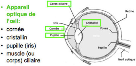 | Quelle est la fonction de l'appareil optique? | C'est de mettre au point l'image d'un objet sur la rétine. |