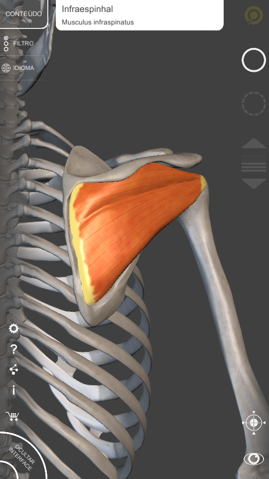 Infraespinal | Origem: Fossa infraespinal da escapula Inserção: tubérculo maior do úmero Ação: rotação lateral do ombro |
