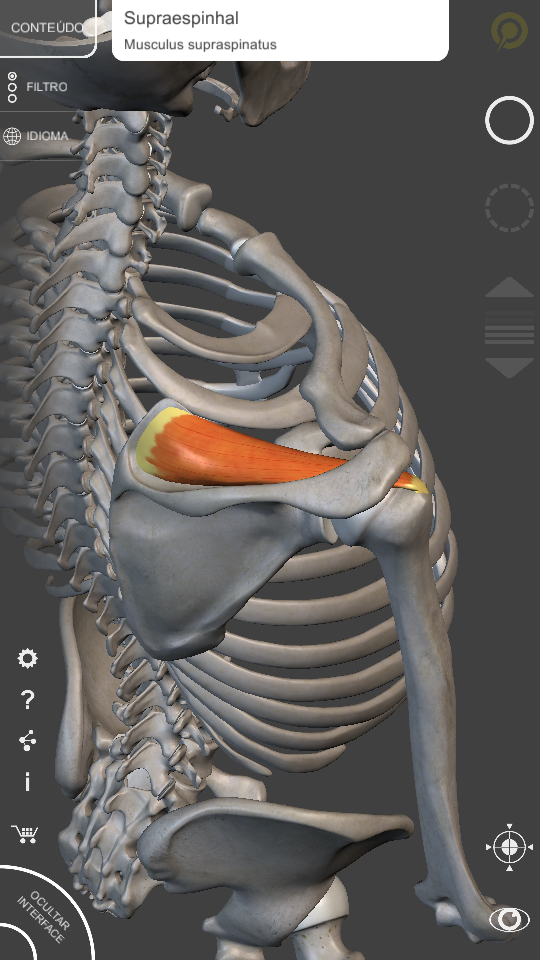 Supraespinal | Origem: Fossa supraespinal da escapula Inserção: Tubérculo maior do úmero Ação: Abdução de ombro (0° a 90°) |