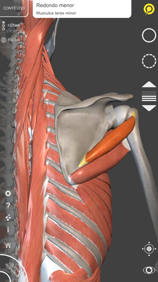 Redondo Menor | Origem: Borda lateral da escapula Inserção: Tubérculo maior do úmero Ação: rotação lateral do úmero |