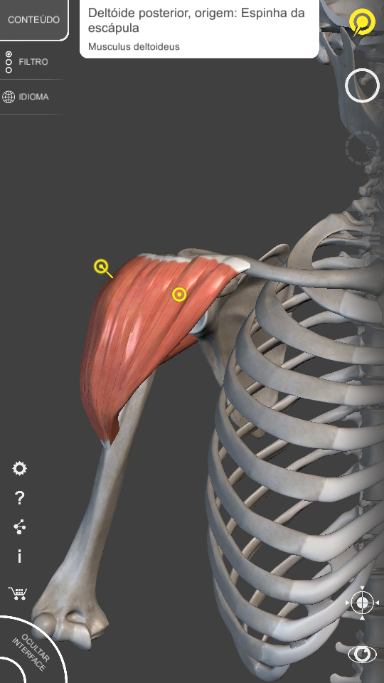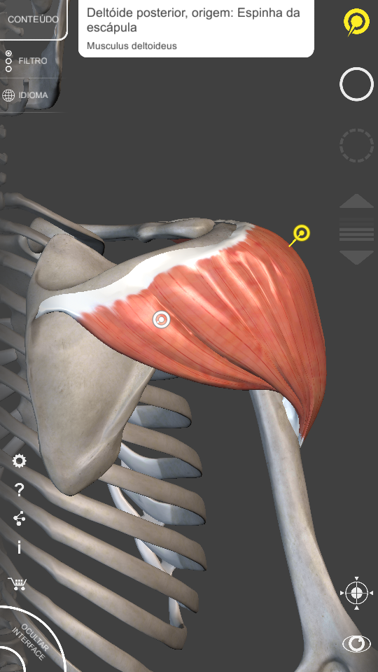 Deltoide Acromial | Origem: Acrômio Inserção: tuberosidade deltoidea Ação: Abdução de ombro |