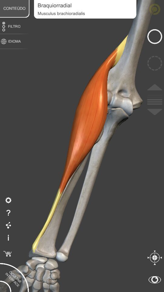 Braquiorradial | Origem: Crista supracondilar do úmero Inserção: processo estiloide do radio Ação: flexao de cotovelo |