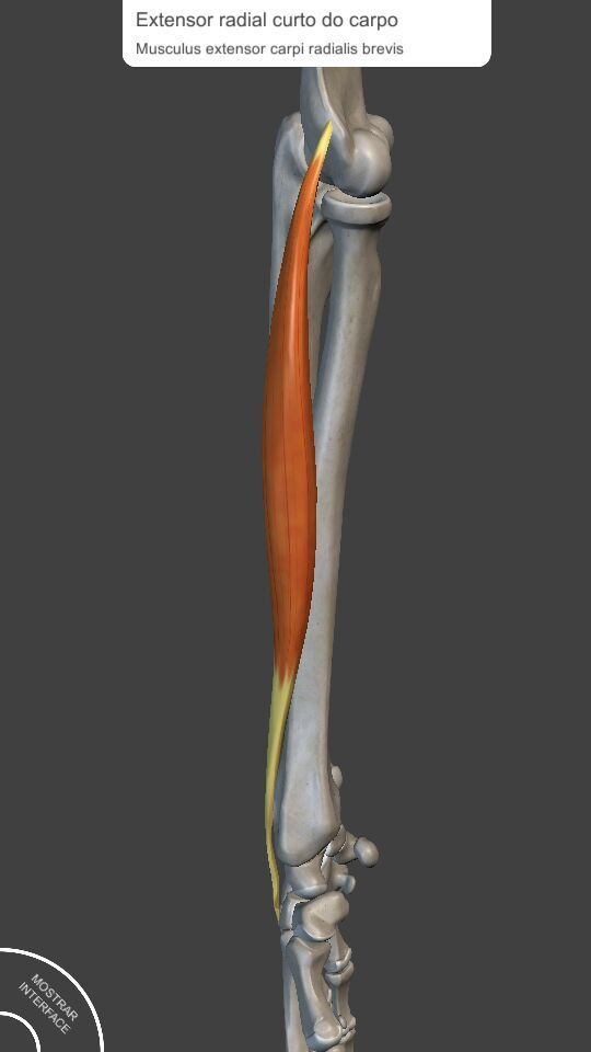 Extensor Radial Curto do Carpo | Origem: Epicôndilo lateral do úmero Inserção: Base do III metacarpo Ação: Extensão da mão |