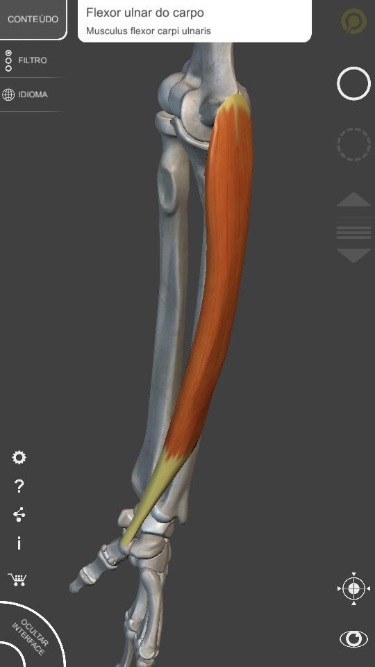 Flexor ulnar do Carpo | Origem: Epicôndilo medial do úmero Inserção: Pisiforme e base do V metacarpo Ação: flexão da mão e adução |