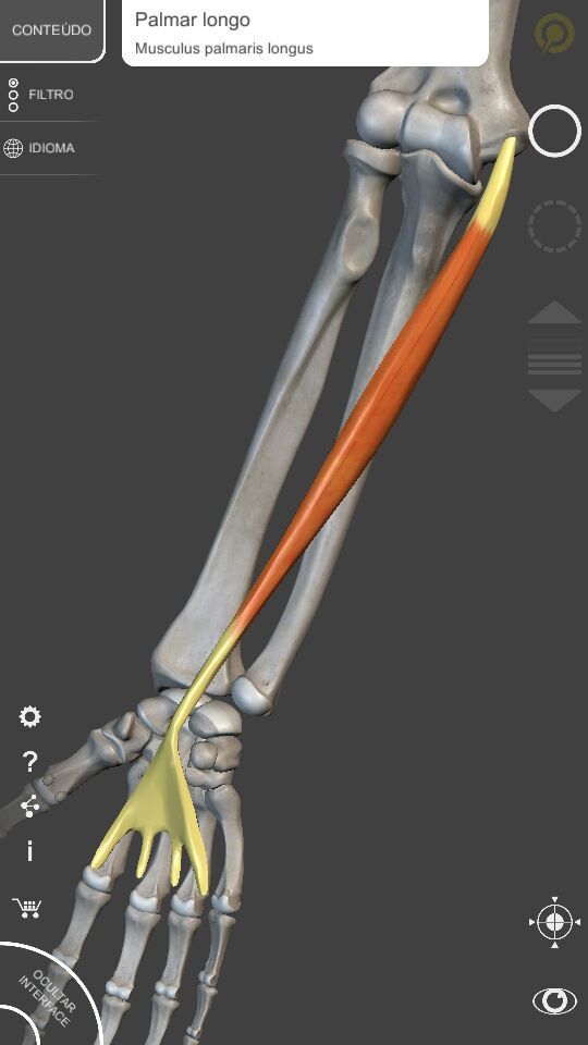 Palmar Longo | Origem: Epicôndilo medial do úmero Inserção: aponeurose palmar Ação: Flexão da mão |