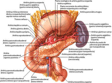 | Quais são os ramos do tronco celíaco? | Artérias 1- Gástrica Esquerda 2- Esplênica 3- Hepática Comum |