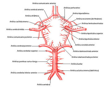 | No Polígono de Willis, a artéria basilar é formada pela junção de quais artérias? | Artérias vertebrais direita e esquerda. |