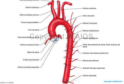 | Quais são os 3 ramos do arco aortico? | 1 - Tronco Braquiocefálico 2 - Carótida Comum esquerda 3 - Subclávia esquerda |