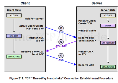 | INTERNETWORKING: How does TCP establish a connection between a client and a server? | Three way handshake |