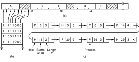 | MEMORY MANAGEMENT: How can memory allocation be represented? | Bitmaps and Linked Lists |