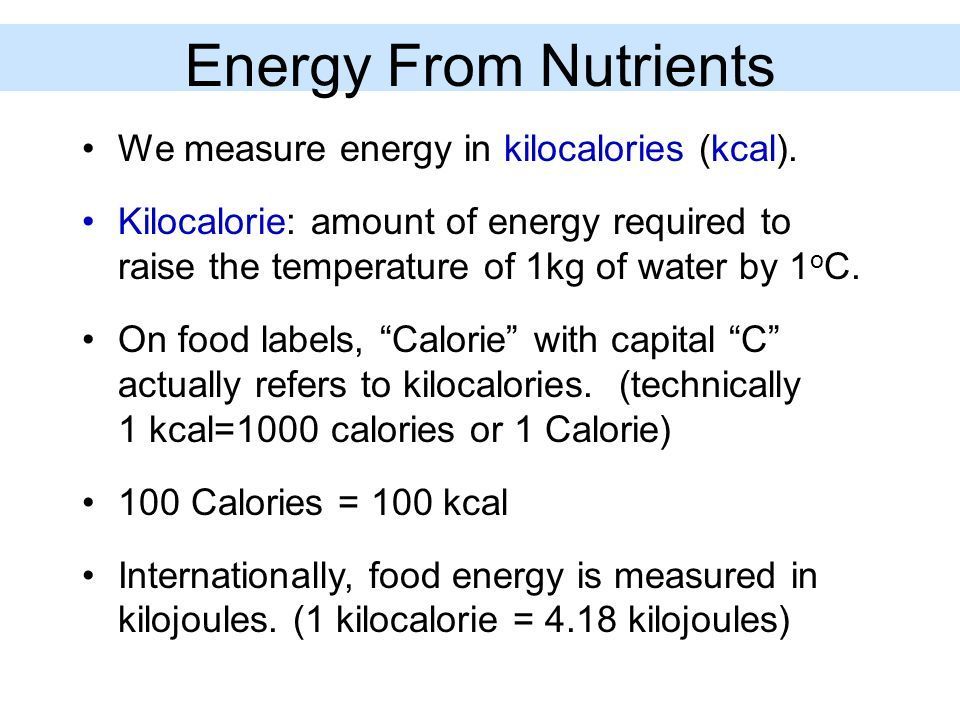 | 1. What is Food measured in? | Food is Measured in Kilojoules.