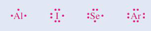 | Write Lewis symbols for the following elements: Al, I, Se, Ar |