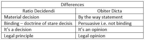 | Differences between Ratio Decidendi and Obiter Dicta ? | |