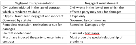 | What are the differences between Negligent misrepresentation and Negligent misstatement ? | |